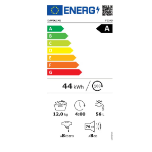 Davoline F12AD Πλυντήριο Ρούχων 12kg 1400στρ. Με Λειτουργία Ατμού Λευκό(Y.85×Π.59,5×B.62,5)