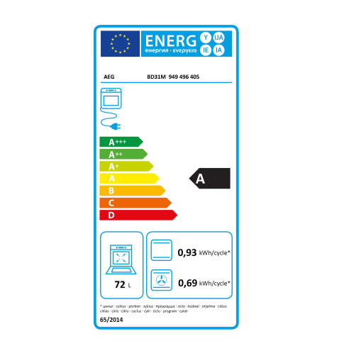 - Κατανάλωση ενέργειας ανεμιστήρα/ζεστού αέρα: 0,69 kWh
