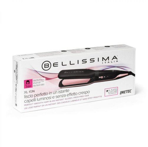 Το Bellissima XL Ion είναι τέλειο για εσάς! Οι εξαιρετικά φαρδιές πλάκες του (110×45 mm) είναι εύκαμπτες και προσαρμόζονται τέλεια στην τούφα για γρήγορο styling ακόμα και σε δύσκολα στη διαχείριση μαλλιά.