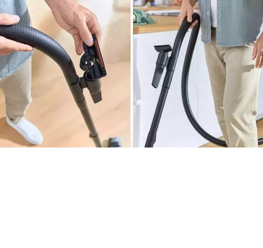 Δεν χρειάζεται πλέον να ψάχνετε τα εξαρτήματα της σκούπας. Το ευέλικτο κλιπ μπορεί να στερεωθεί είτε στη χειρολαβή είτε στο σωλήνα, επομένως μπορείτε να έχετε τα εξαρτήματα πάντα διαθέσιμα όταν τα χρειαστείτε. Μπαίνουν και βγαίνουν εύκολα, χωρίς να διακόπτετε το σκούπισμα.