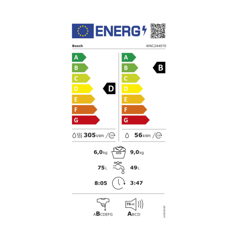 - Το πλυντήριο-στεγνωτήριο Bosch WNC244070 διαθέτει εξαιρετικά χαρακτηριστικά.