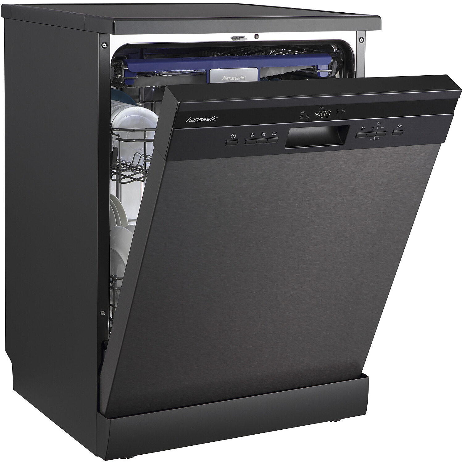 Ρυθμιζόμενο ύψος άνω καλάθι, κάτω καλάθι με πτυσσόμενη σχάρα πιάτων - Η Hanseatic προσφέρει το HF6B14B35E, ένα ανεξάρτητο πλυντήριο πιάτων διαστάσεων 59,8 x 84,5 x 60 εκ. (Π x Υ x Β).